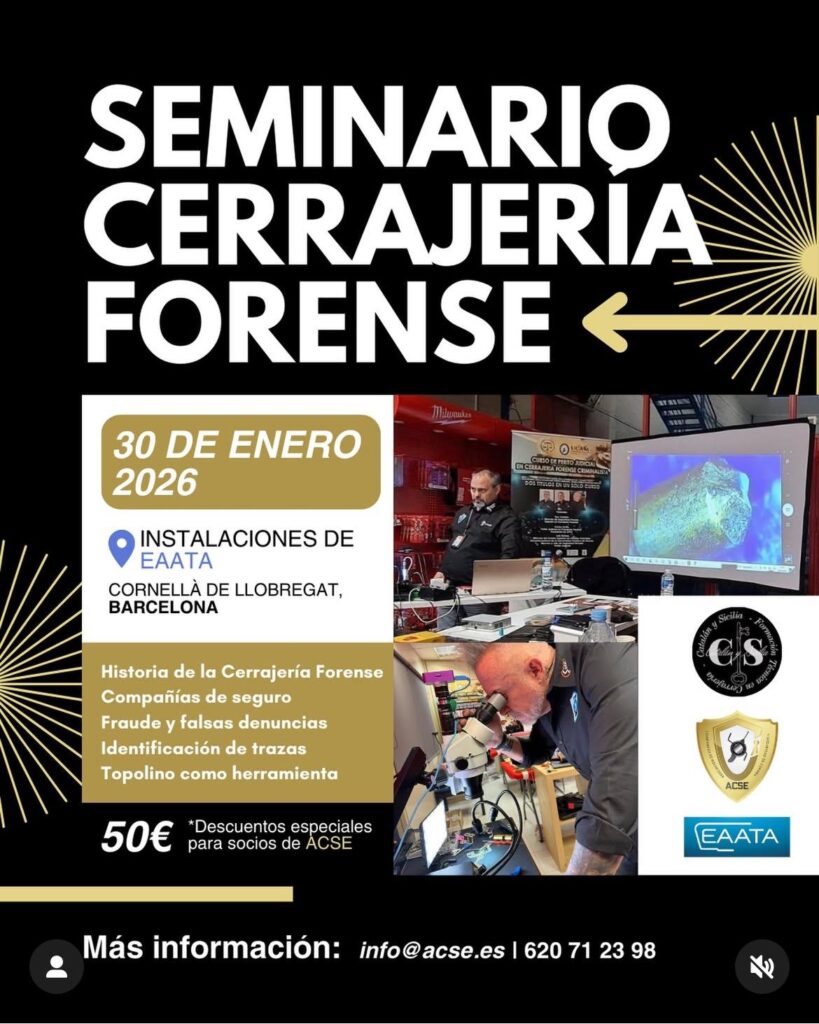 Llega uno de los eventos formativos más relevantes del sector: el Seminario de Cerrajería Forense, organizado por ACSE, el 30 de enero de 2026 en Barcelona, de 9h a 13h.